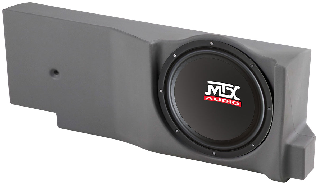 Loaded Thunderform with a single, hard hitting, twelve inch Terminator Subwoofer rated at 200 watts RMS @ 4 ohms. Vehicle specific ThunderForm enclosures are designed to utilize space in vehicles that would otherwise go unused to add a subwoofer enclosure. These enclosures are highly durable and provide a custom fit so that you do not have to sacrifice cargo space for added aftermarket performance. This model includes a single 12" Terminator series subwoofer for an unbeatable listening experience with a stealthy factory look
